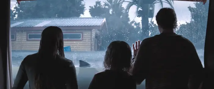 การสร้างเมืองที่ถูกน้ำท่วมนั้นเป็นโจทย์ที่ท้าทายมาก ทีมงานเลือกใช้การเซ็ตฉากจริงผสมผสานกับ CGI เพื่อสร้างความสมจริงของกระแสน้ำและซากปรักหักพัง สำหรับ “ตัวละครหลัก” อีกตัวอย่าง “ฉลาม” การออกแบบ CGI ของฉลามในเรื่องนี้ถือว่าทำได้ในระดับมาตรฐานของหนัง Netflix ฟอร์มใหญ่ การเคลื่อนไหวของฉลามมีความดุดัน รวดเร็ว และดูมีน้ำหนัก แม้บางฉากที่มีการต่อสู้กันใต้น้ำแบบชุลมุนอาจจะมีลอยๆ ไปบ้าง แต่ภาพรวมก็ถือว่าสอบผ่านและน่าเกรงขามเพียงพอที่จะทำให้คนดูหวาดผวา