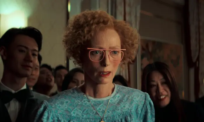 ส่วน Tilda Swinton ในบทนักสืบ Cynthia Blithe… แม่ก็คือแม่ครับ แม้บทของเธอจะดูเป็นการ์ตูนไปหน่อย (ใส่ชุดแปลกๆ บุคลิกหลุดโลก) เหมือนหลุดมาจากหนัง Wes Anderson แต่ทิลด้าก็คือทิลด้า เธอเข้ามาเพื่อเป็นตัวแทนของ “ความจริง” ที่ไล่ล่าดอยล์ การแสดงของเธอช่วยเบรกอารมณ์ฟุ้งฝันของหนังให้กลับมาสู่โลกความเป็นจริงได้ดี แม้บางทีผมจะแอบรู้สึกว่าบทของเธอ “ล้น” ไปนิดเมื่อเทียบกับความเรียลของฟาร์เรลล์