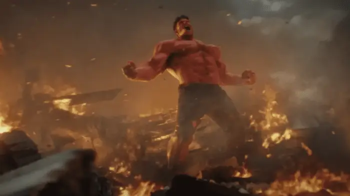 ฉากต่อสู้เน้นย้ำความแตกต่าง: Red Hulk (พละกำลังดิบเถื่อน) ปะทะ Sam Wilson (ความคล่องตัวและยุทธวิธี) Sam ใช้ทักษะการบินและการใช้โล่ Vibranium เพื่อรับมือและหาทางเรียกสติ หรือหยุดยั้ง Ross โดยไม่ฆ่าเขา