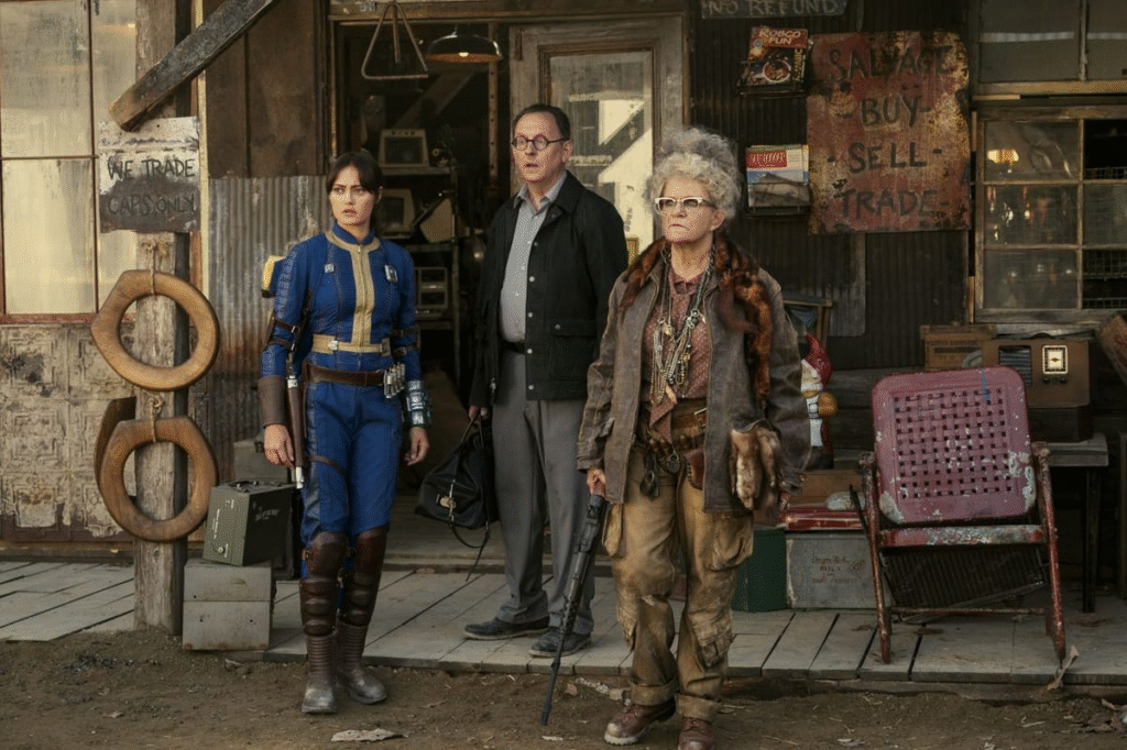 นี่คือจุดแข็งที่สุดของซีรีส์ ทีมงานเนรมิตโลก Fallout Season 1 ออกมาได้ “เป๊ะ” ตามต้นฉบับเกมมาก การผสมผสานระหว่างเทคโนโลยีล้ำสมัยกับสไตล์ย้อนยุคปี 50s (Retro-futurism) ทำได้ลงตัว ทั้งเพลงประกอบ เสื้อผ้า และฉาก