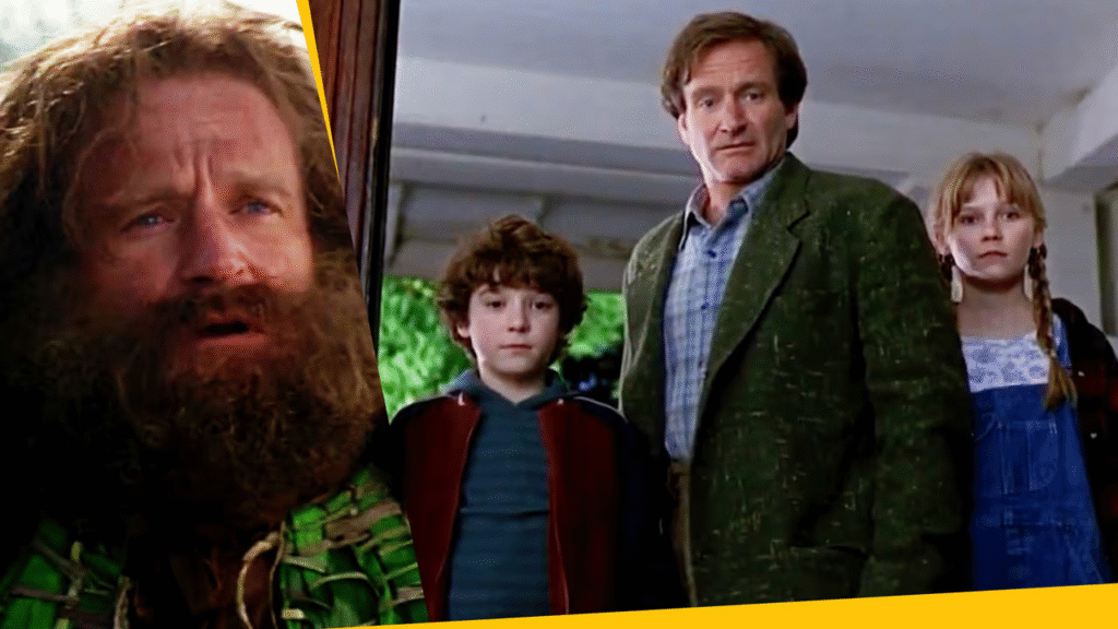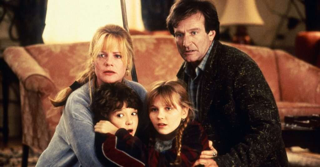 ประเด็นจิตวิทยาที่ลึกซึ้ง จุดที่น่าสนใจที่สุดของบท คือการเขียนให้ตัวละคร “อลัน ปาร์ริช” (Alan Parrish) ต้องติดอยู่ในเกมนานถึง 26 ปี บทหนังไม่ได้แค่ให้เขาไปเที่ยวป่า แต่พรากช่วงเวลาชีวิตวัยรุ่นและวัยหนุ่มของเขาไปจนหมดสิ้น นี่คือความโหดร้ายระดับโศกนาฏกรรม และเมื่อเขากลับมา เขากลับมาในร่างผู้ใหญ่ที่มีจิตใจเป็นเด็ก (Man-child) ที่ต้องมาเผชิญหน้ากับโลกความจริงที่พ่อแม่เสียชีวิตไปหมดแล้ว บทหนังจุดนี้มีความดราม่าที่หนักแน่นมาก ทำให้คนดูไม่ได้แค่ “ลุ้น” ให้หนีเสือพ้น แต่ “เอาใจช่วย” ให้เขาได้ชีวิตคืนมา