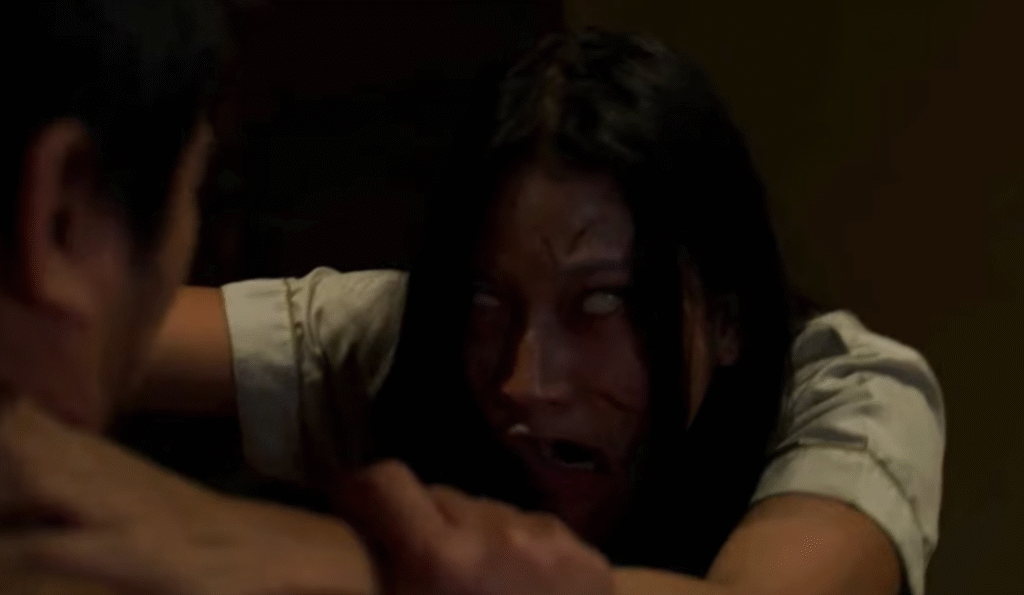 ความขัดแย้งที่มากกว่าแค่ความกลัว หนังเรื่องนี้ไม่ได้ขายแค่ความกลัวผี แต่มันขาย “ความกลัวการสูญเสีย” และ “ความเปราะบางของศรัทธา” บทหนังฉลาดมากที่เลือกเล่นงานที่ ‘กล่องดวงใจ’ ของตัวเอก นั่นคือครอบครัว การที่ปีศาจร้ายเลือกสิงภรรยาและลูก ไม่ใช่แค่การคุกคามทางกายภาพ แต่มันคือการท้าทายอีโก้และความเชื่อมั่นของหมอผีโดยตรง มันตั้งคำถามกับคนดูและตัวละครตลอดเวลาว่า “ในวันที่คนที่คุณรักกลายเป็นปีศาจ บทสวดที่คุณท่องจำมาทั้งชีวิต จะยังศักดิ์สิทธิ์พอที่จะช่วยพวกเขาได้ไหม?” หรือ “ความรักของคุณจะทำให้คุณลังเลที่จะลงมือทำร้ายร่างที่ถูกสิงหรือเปล่า?” นี่คือ Conflict หลักที่ขับเคลื่อนหนังไปข้างหน้าอย่างทรงพลัง