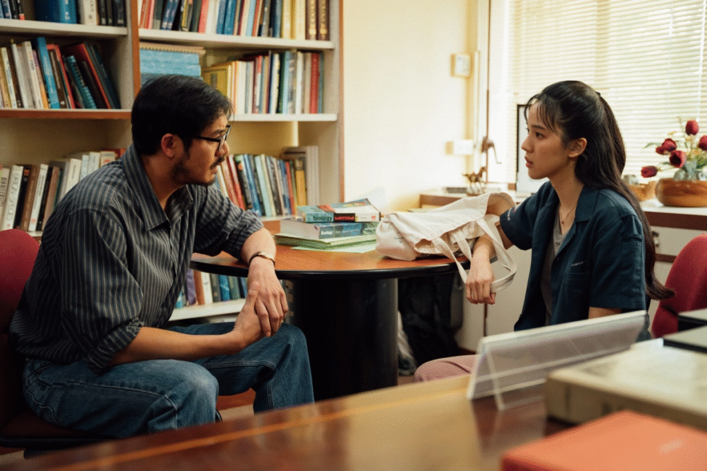 ความเร็วของหายนะ (Pacing of Disaster) หนังเลือกที่จะไม่เสียเวลากับการปูพื้นนานเกินไป การระบาดเกิดขึ้นรวดเร็วและรุนแรง จังหวะการเปลี่ยนผ่านจาก “วันธรรมดาในมหาลัย” ไปสู่ “นรกบนดิน” ทำได้กระชับและบีบคั้นหัวใจ บทฉลาดตรงที่เลือกใช้ Location ที่เราคุ้นเคย—ห้องเรียน โรงอาหาร หอพัก—มาเป็นกับดักมรณะ การที่ตัวละครต้องวิ่งหนีในทางเดินแคบๆ หรือติดอยู่ในห้องเลคเชอร์กระจกใสที่มองเห็นฝูงซอมบี้ข้างนอก มันสร้างความรู้สึก Claustrophobic (กลัวที่แคบ) และสิ้นหวังได้อย่างดีเยี่ยม